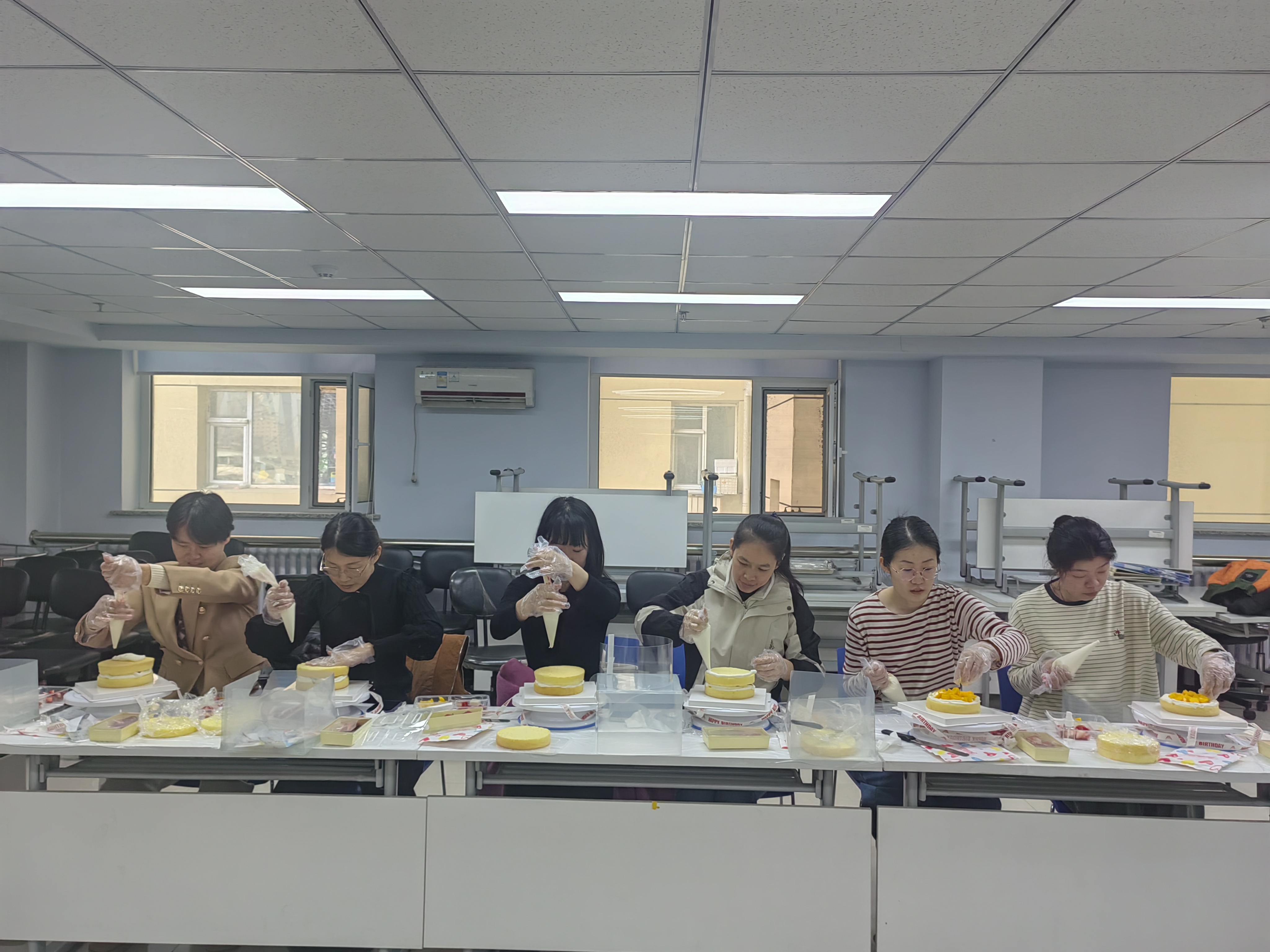 在整个活动过程中,大家相互交流、互相帮助,有经验的热情分享自己的烘焙心得,新手则虚心学习。现场欢声笑语不断,氛围十分融洽。经过一番努力,一个个造型精美、香气扑鼻的蛋糕作品完成了,大家看着自己亲手制作的作品,脸上洋溢着满满的成就感与幸福笑容。