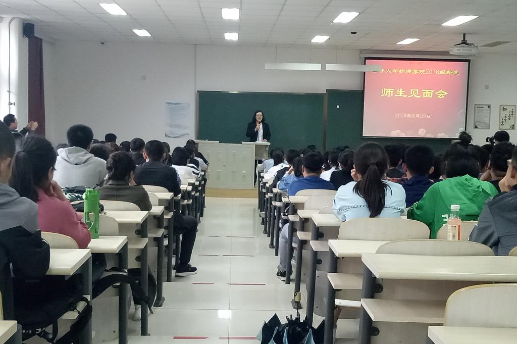 于8月29日下午在前卫校区李四光楼102教室举办了2018级师生见面会。2018级全体新生参加会议,党委书记席海涛、学院院长陈立、副院长李昆、副院长、学院各教研室主任、各办公室主任、学生工作办公室全体人员出席了本次见面会。会议由院党委副书记兼副院长、2018级辅导员葛宗梅主持。